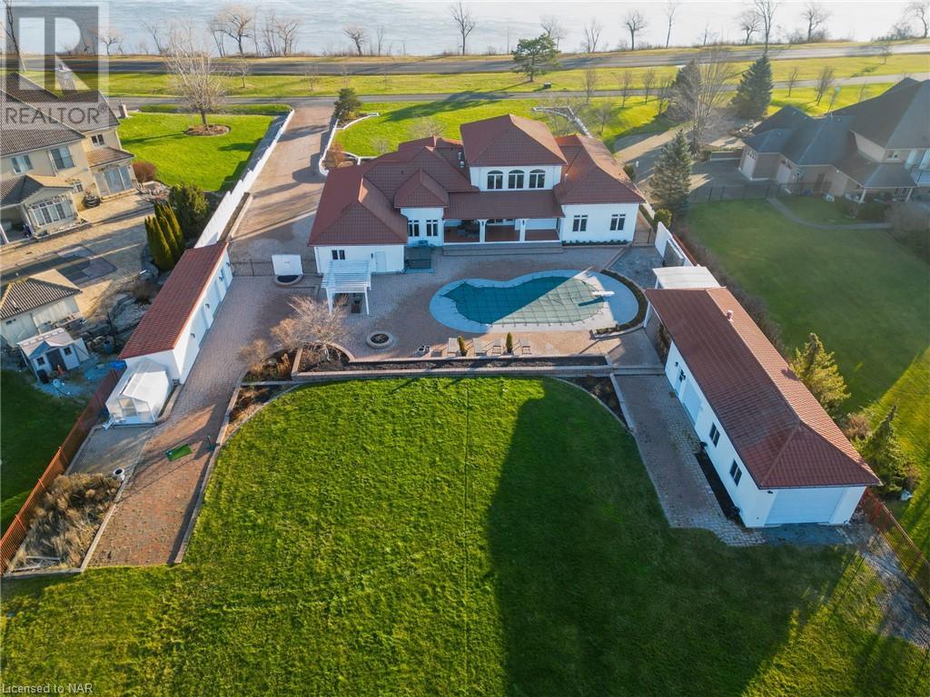 -Located on the Niagara River Parkway, close to attractions, this 1.5-acre property offers river views and a sunset-facing backyard with a heated pool, outdoor kitchen, and entertainment areas.