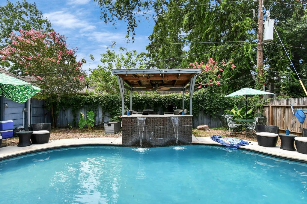 In Houston, TX, you get a spacious 4-bed, 2.5-bath, 3,031 sqft home on a 9,461 sqft lot with a 3-car garage, a covered patio, a pool with a waterfall feature and an outdoor bar.
